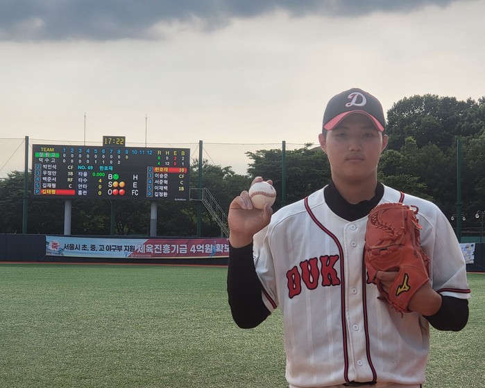 [부자동네타임즈 김인수기자] 2023 고교야구 주말리그 후반기 서울권A 3번째 경기에서 노히트 노런이 달성되었다. 대기록의 주인공은 바로 덕수고등학교 투수 김태형(2학년, 우투우타, 186cm, 91kg)이다.