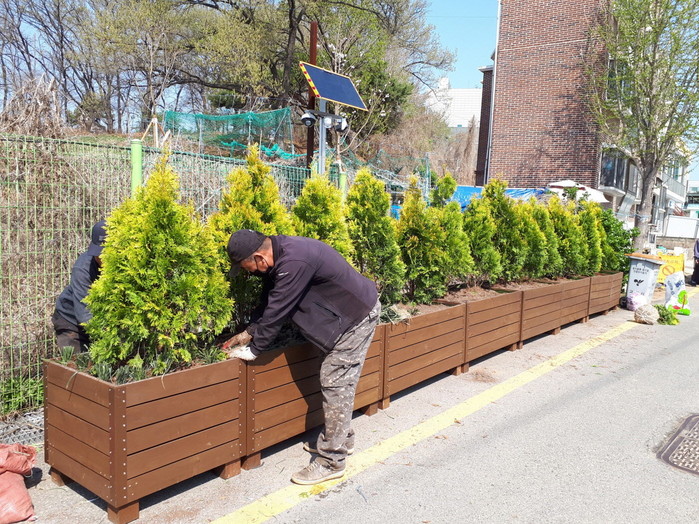 이번에 화단을 설치한 곳은 주·야간 상습 무단투기가 빈번하게 발생되는 곳으로 쓰레기 무단투기를 원천 차단하기 위한 특단의 조치로서, 주변 환경을 정비한 후고정식 대형 화분을 설치하고 에머랄드 골드와 맥문동을 식재하여 아름다운 화단을 조성했다.