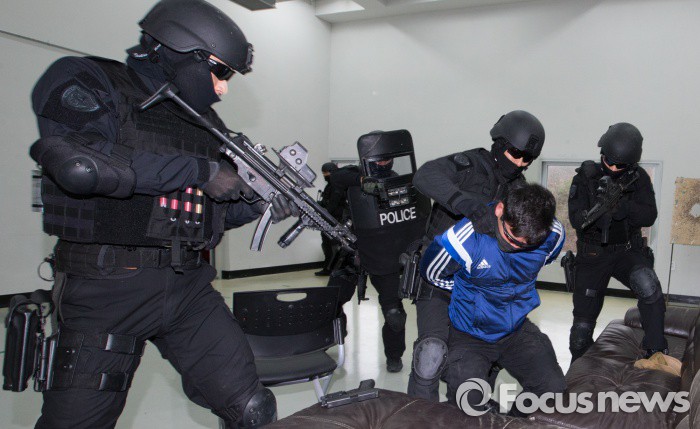 (대전=포커스뉴스) IS의 프랑스 파리 테러 사건으로 전세계가 테러 위협을 받고 있는 가운데 19일 오후 대전 유성구 세동 대전경찰특공대 훈련장에서 경찰특공대원들이 대테러 훈련을 하고 있다.