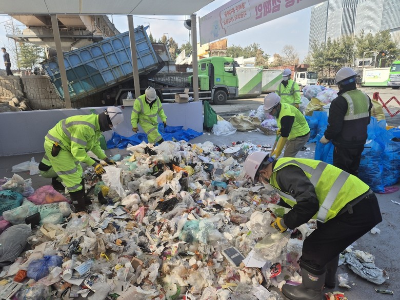검사는 종량제봉투가 청소차고지로 집하된 이후 환경공무관이 봉투를 직접 파봉해 재활용 가능 자원을 분류하고, 해당 자원의 무게를 측정한다.