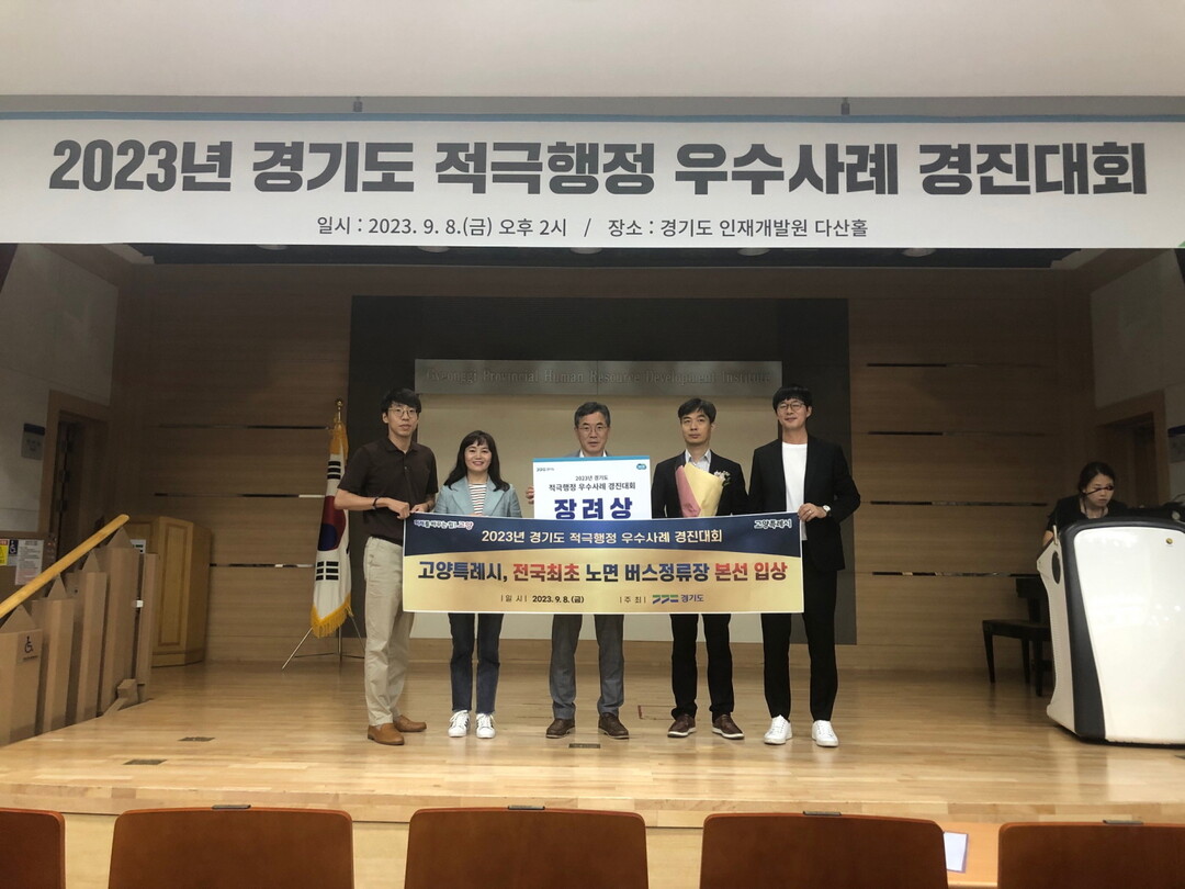 고양특례시는 2023년 행정안전부 지방규제혁신 우수사례 경진대회에서 ‘수요친화적 틈새규정 발굴로 기업 애로사항 해결’사례로 우수상을, 경기도 적극행정 우수사례 경진대회에서‘전국 최초, 노면 버스정류소 시범 설치사업’으로 장려상을 수상했다.