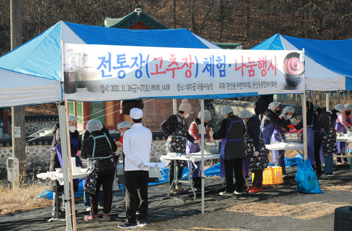 코로나19 방역수칙을 준수하기 위해 이틀간 4차례로 나눠 진행한 이번 행사에는 200여 명이 넘는 지역주민들이 참여해 이웃과 함께 고추장을 빚었다.