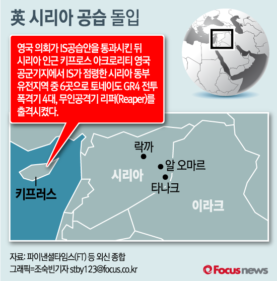 영국 일간 텔레그레프는 영국 의회가 IS 공습안을 통과시킨 뒤 57분 만에 시리아 인근 키프로스 아크로티리의 영국 공군기지에서 전투기가 출격했다고 보도헀다.