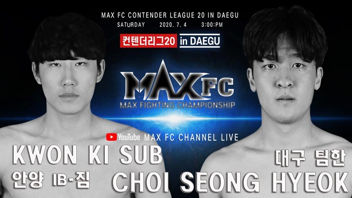 한편 ‘대구협회장기 무에타이 대회 및 맥스 FC 컨텐더리그 20’은 7월 4일 대구광역시 대백프라자에게 열린다. 코로나19 여파로 무관중 경기로 진행되며 맥스 FC 공식 유튜브 채널에서 생중계된다. 메인이벤트로 미들급 챔피언 김준화가 대구의 신예 이명준과 논타이틀 매치를 진행한다.