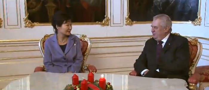 | △ 박근혜 대통령이 2일 밀로시 제만 체코 대통령과 정상회담을 진행하고 있다. <사진출처=방송화면 캡쳐> |