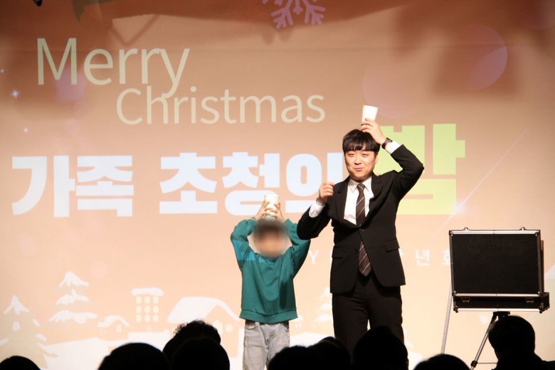 ▲지난 22일 신천지 영등포교회 장년회가 개최한 ‘장년회와 함께 패밀리 파티’ 행사장에서 마술 공연을 선보이고 있다.  [사진 제공 = 신천지 영등포교회]