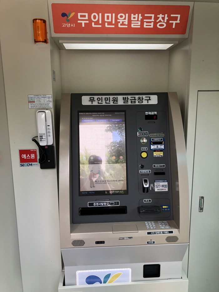 [부자동네타임즈 김인수기자] 고양시 일산동구청(구청장 정영안)은 "지난 16일 편리하고 원활한 소통 창구를 만들기 위해 관내 모든 무인민원발급기에 인터폰 설치를 완료했다."고 밝혔다.