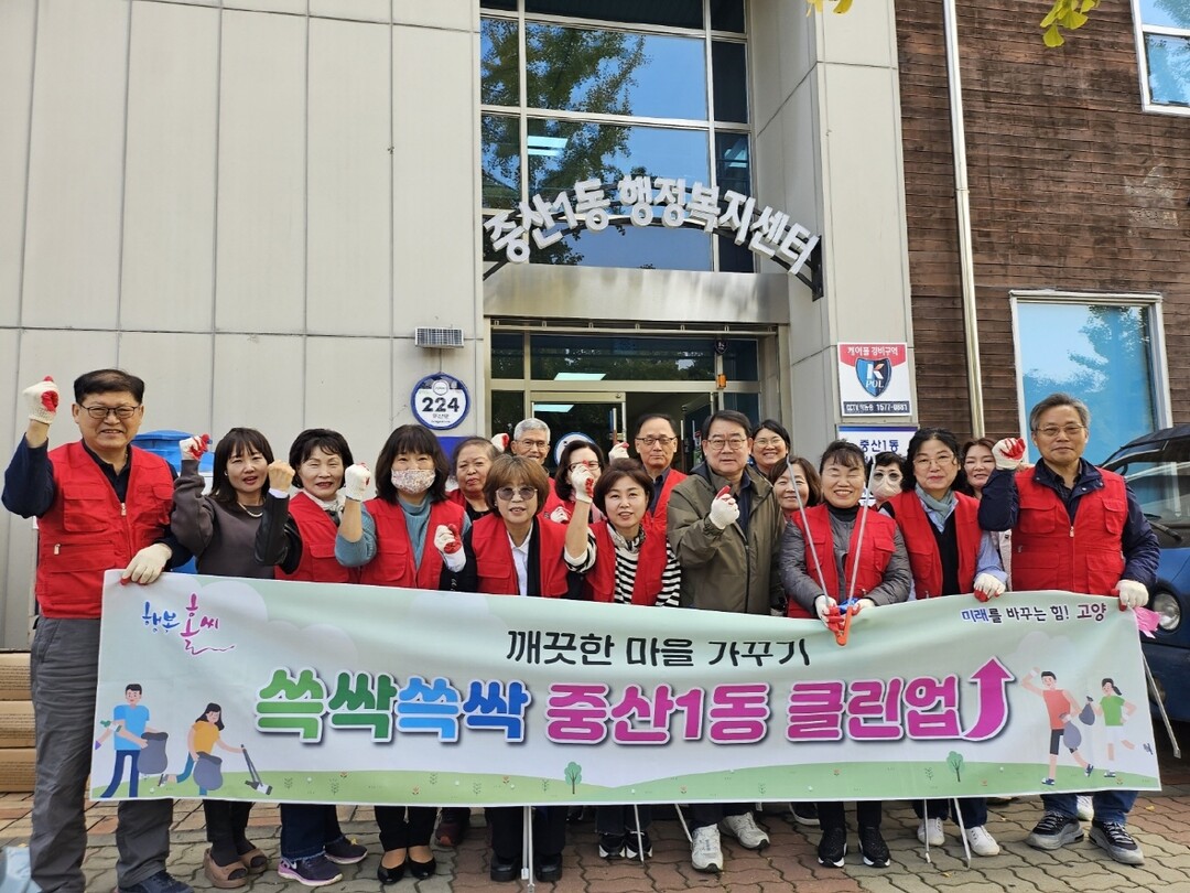 [부자동네타임즈 = 김인수 기자] 고양특례시 중산1동은 지난 24일 관내 상가 밀집지역(해태쇼핑타운 일대) 골목에서 동네환경정화를 위해 ‘쓱싹쓱싹 중산1동 클린업!’활동을 실시했다. 이날 통장협의회, 동직원 등 20여명이 참여했으며, 구역별 4개조로 나눠 청소를 실시했다.