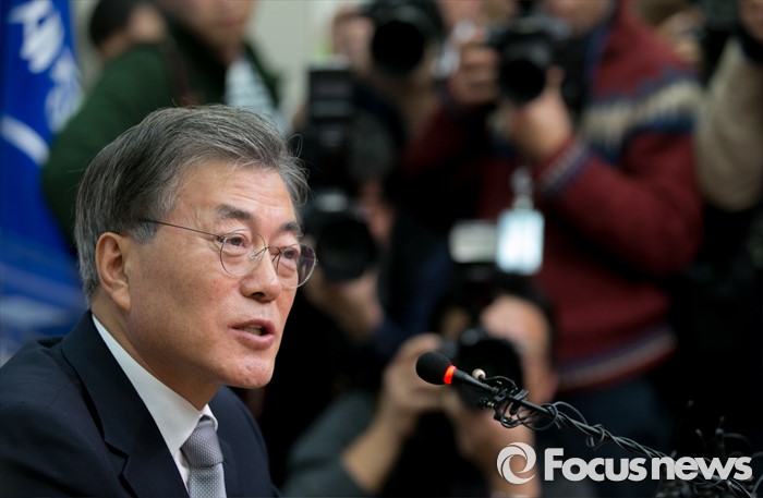 | △ 문재인 새정치민주연합 대표가 3일 오후 서울 여의도 국회에서 안철수 의원이 제안한 '혁신전대' 등 현안관련 입장발표를 마친 뒤 취재진 질문에 답하고 있다. <사진제공=포커스뉴스> |