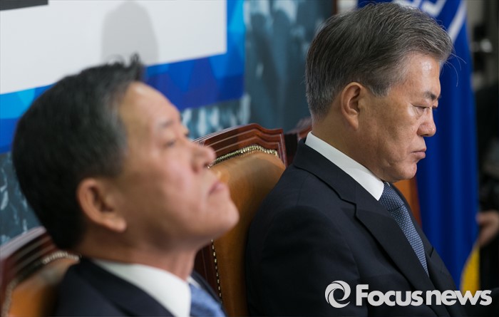 | △ 문재인(오른쪽) 새정치민주연합 대표와 주승용 최고위원이 지난 2일 오전 서울 여의도 국회에서 열린 최고위원회의에 참석해 생각에 잠겨 있다. <사진제공=포커스뉴스> |