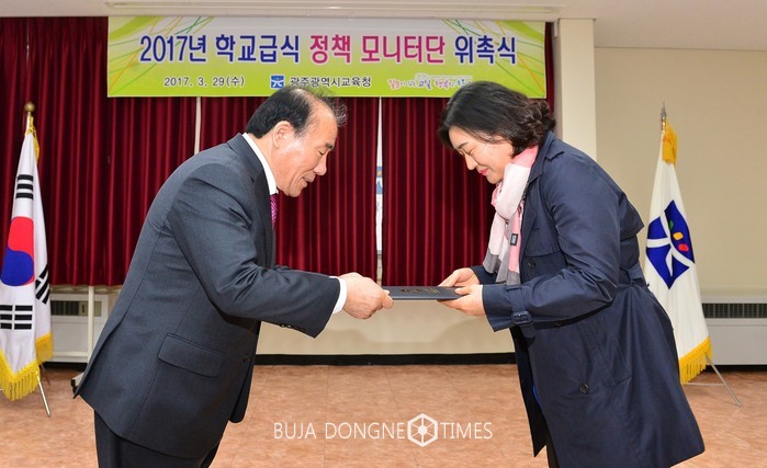 발대식에 참석한 장휘국 교육감은 모니터단에게 위촉장을 수여한 후 "광주교육 급식정책의 발전을 위 해 냉철한 감시와 함께 참신하고 생생한 의견을 아낌없이 제시해 주길 바란다."고 당부했다.