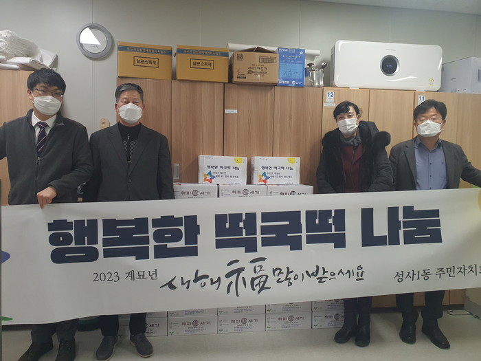 성사1동 주민자치회는 매년 초, 떡국떡을 주문 제작해 손수 포장해 관내 독거노인 등 소외계층에게 전달하는 행사를 꾸준히 해오고 있다.