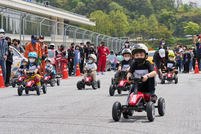 [사진설명] 2022 슈퍼레이스 챔피언십 개막 첫날, 슈퍼 미니미레이스에 참여해 실제 서킷을 위를 질주하고 있는 아이들.