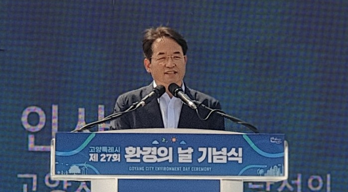 이동환 당선인은 11일 고양시 일산호수공원 한울광장에서 개최한 ‘2022 고양시 환경의날 기념식’에 참석해 “2022년 현재 우리는 인류의 생존위기인 기후위기 시대에 살고 있다”면서 “고양시를 더 이상 외부에 의존하지 않고 자립할 수 있는 탄소중립 자족도시로 만들어야 한다”고 밝혔다.
