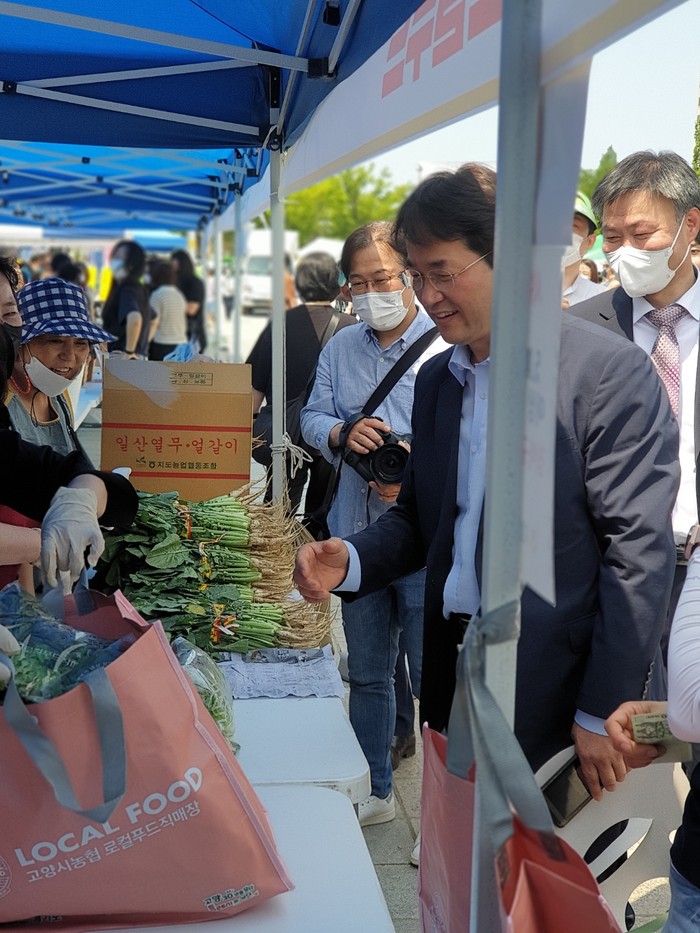 이 당선인은 이날 기념식 이후 ‘탄소중립 나눔마켓’을 들러 약 400개 팀이 참여한 개인장터와 농ㆍ축협 특산품 로컬푸드 10개 팀, 소상공 플리마켓 재미공작소 30개 팀, 청년기후활동가 3개 팀, 고양교육지원청 학교동아리 3개 팀 등을 찾아 응원했다.