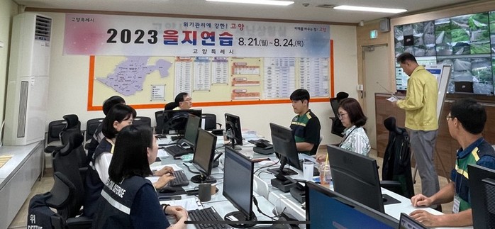[부자동네타임즈 김인수기자] 고양특례시 덕양구는 지난 24일 을지연습 종료 후 덕양구청 재난상황실에서 ‘2023 을지연습 종합 강평 보고회’를 가졌다.