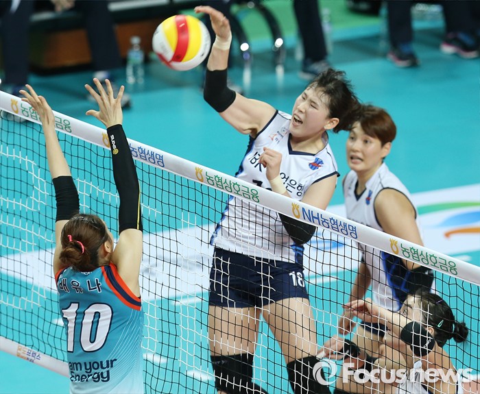 | △ 10일 장충체육관에서 열린 '2015-2016 NH농협 V-리그' 여자부 2라운드 GS칼텍스-IBK기업은행 경기에서 IBK기업은행 김유리가 세터 김사니의 토스를 받아 속공으로 연결하고 있다. 우정식 기자 uhcho@focus.kr |