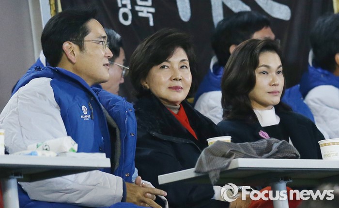 | △ 29일 이재용 삼성 부회장, 홍라희 여사, 이서현 제일기획 경영담당 사장(왼쪽부터)이 잠실구장을 찾아 삼성-두산 한국시리즈 3차전을 관전하고 있다. 우정식 기자 uhcho@focus.kr |