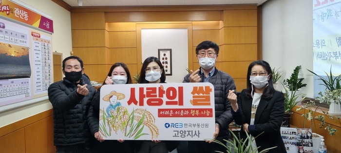 [부자동네타임즈 김인수기자] 고양시 덕양구 관산동 행정복지센터(동장 서병하)는 지난 24일 명절을 앞두고 한국부동산원 고양지사(지사장 강성덕)에서 사랑의 쌀 100포를 전달했다고 밝혔다.