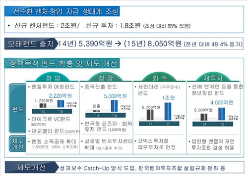 (서울=연합뉴스) 임은진 기자 = 중소기업청과 한국벤처투자는 창업·벤처기업 투자활성화를 위해 올해 2조원 규모의 벤처펀드를 조성한다고 2일 밝혔다.