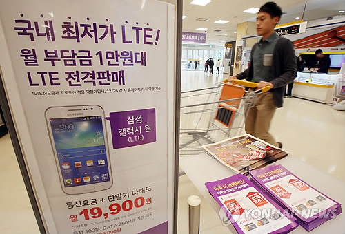 이마트는 지난달 2년 약정 기준 월 실요금이 1만9천원(음성 100분, 데이터 250MB)인 LTE 요금제를 내놓으면서 가입고객에 5천원을 추가로 할인해주는 판촉행사를 벌인 바 있다.
