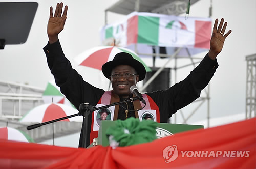 조너선 대통령은 오는 14일 치러지는 대통령 선거에서 제1야당 범진보의회당(APC) 후보인 모함마두 부하리 전 장관과 접전을 펼치고 있다.