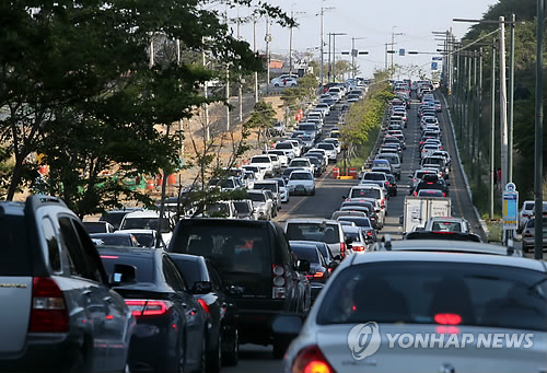 | △ 부산지역 자동차세 연납 신청이 급증한 것으로 나타났다. 사진은 부산시내 도로에 차량들이 달리는 모습. <연합뉴스 자료사진> |