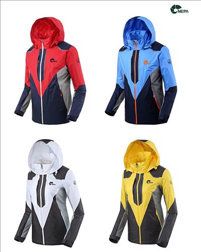 변덕스러운 날씨에 대비한 방수재킷인 패스파인더는 부위마다 필요한 곳에는 타슬란 소재를 사용해 내구성을 높이고 안감에는 메시소재를 사용해 통기성을 강화한 제품이라고 네파는 설명했다.