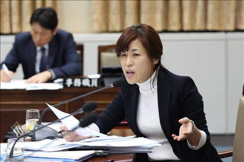 | △ 부산시의회 복지환경위원회 정명희 의원이 4일 부산시 건강체육국의 업무보고에서 결핵예방 접종의 문제점을 지적하고, 대책마련을 촉구하고 있다. |