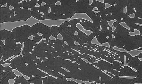 | △ '더 가볍고 더 강하고 더 유연한' 철강 소재 개발. 새로 개발된 철강 소재의 단면을 2만배로 확대한 사진. 밝은 회색 부분이 철-알루미늄 금속간화합물로 골고루 퍼져 있는 이 부분이 철강에 힘이 가해져 변형이 일어날 때 주변 합금의 이동을 잡아주는 역할(전위 Pinning)을 해 강도는 높이고 유연성은 좋게 하는 역할을 한다. |