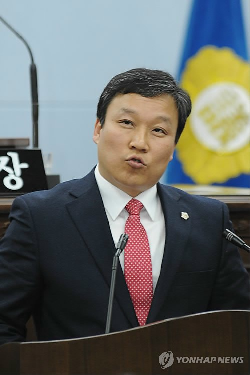 △ 시정질문하는 김용규 청주시의원 (청주=연합뉴스) 박재천 기자 = 김용규 청주시의원이 5일 시의회 본회의장에서 이승훈 청주시장을 상대로 시정질문을 하고 있다. 김 의원은 한국항공우주산업(KAI)이 청주공항 에어로폴리스 내 항공정비(MRO) 단지 조성 사업에서 이탈한 것과 이 사업에 대한 청주시의 역할론을 놓고 이 시장을 몰아붙였다. 2015.2.5 <<청주시의회>> jcpark@yna.co.kr