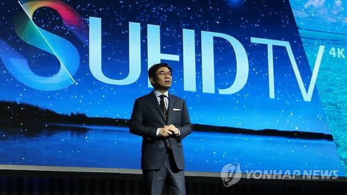 | △ 삼성 SUHD TV 소개하는 김현석 사장 (서울=연합뉴스) 양지웅 기자 = 5일 오전 서울 강남구 역삼동 라움에서 열린 삼성전자 2015 TV 미디어데이 행사에서 김현석 영상디스플레이사업부장 겸 사장이 SUHD TV를 소개하고 있다. |