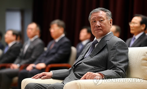| △ 현대차 시무식 참석한 정몽구 회장 (서울=연합뉴스) 신준희 기자 = 정몽구 현대자동차그룹 회장이 2일 오전 서울 양재동 현대차 사옥에서 열린 2015년 시무식에서 참석, 자리에 앉아 시작을 기다리고 있다. 2015.1.2 hama@yna.co.kr |