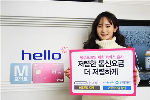 (서울=연합뉴스) 전성훈 기자 = CJ헬로비전[037560]의 알뜰폰 브랜드 '헬로모바일'은 우리카드와 함께 최대 2만원의 통신비 할인 혜택을 제공하는 '헬로모바일이어서 즐거운 카드'를 출시한다고 6일 밝혔다.