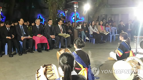 △ 베트남 한류 체험 나선 김종덕 문화체육관광부 장관 (하노이=연합뉴스) 김권용 특파원 = 베트남을 방문 중인 김종덕 문화체육관광부 장관이 6일 하노이 시내 한국문화원 구내에서 베트남 대학생들의 사물놀이 공연을 관람하며 박수를 치고 있다. 김 장관은 앞서 롯데센터 하노이에서 열린 문화 콘텐츠 간담회에서 "우리의 콘텐츠를 일방적으로 전하는 종전의 태도에서 벗어나야 한다"며 "베트남의 화려한 문화를 받아들여 우리의 문화도 살찌워야 한다"고 강조했다. 2015.2.6 kky@yna.co.kr