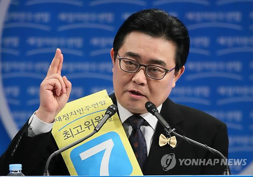 | △ 전병헌 최고위원 후보자 연설 (서울=연합뉴스) 진성철 기자 = 전병헌 최고위원 후보자가 8일 서울 송파구 올림픽체조경기장에서 열린 새정치민주연합 제1차 정기전국대의원대회에서 후보자연설하고 있다. 2015.2.8 zjin@yna.co.kr |