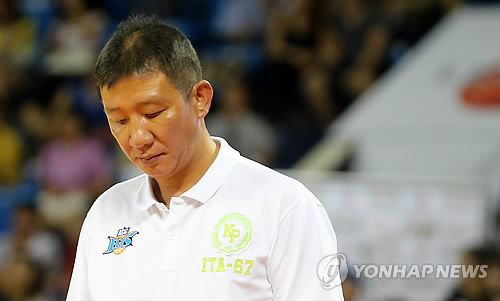 △ 사퇴한 전주 KCC 허재 감독 (서울=연합뉴스) 성적 부진에 책임을 지고 물러난 프로농구 전주 KCC 허재 감독. KCC는 코치이던 추승균 감독 대행 체제로 남은 시즌을 치른다. 지난 2013년 8월 서울 잠실학생체육관에서 열린 '2013 KB국민카드 프로-아마 최강전 전주 KCC이지스와 경희대학교의 경기'에서 전주 허재 감독이 점수차가 계속 벌어지자 고개를 숙이고 생각에 잠겨있다. 2015.2.9 << 연합뉴스 DB >> photo@yna.co.kr
