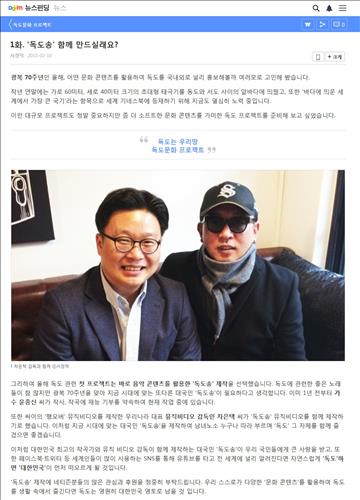 (서울=연합뉴스) 왕길환 기자 = 한국 홍보 전문가인 서경덕 교수가 기획하고 가수 윤종신이 작사·작곡하는 '독도송'을 차은택 감독이 뮤직 비디오로 만들기로 했다.