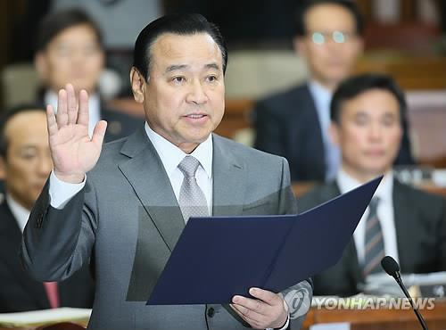 | △ 이완구 국무총리 후보자가 10일 국회에서 열린 인사청문회에서 선서하고 있다. |