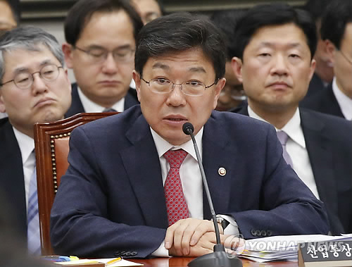 | △ 답변하는 윤상직 산업통상자원부 장관 (서울=연합뉴스) 이상학 기자 = 윤상직 산업통상자원부 장관이 10일 오후 국회에서 열린 산업통상자원위원회 전체회의에서 의원들의 질의에 답변하고 있다. |