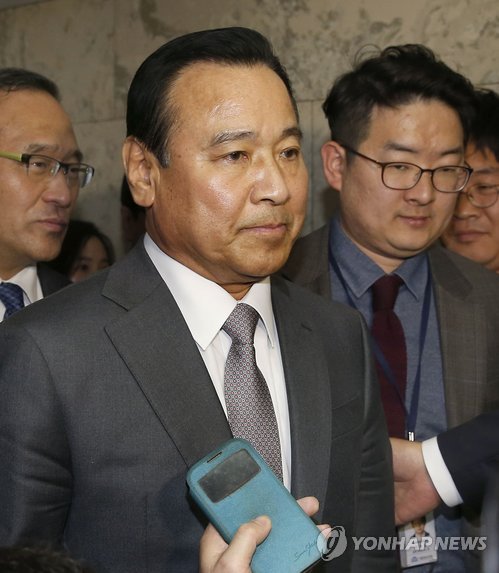| △ 청문회장 나서는 이완구 총리 후보자 (서울=연합뉴스) 이상학 기자 = 이완구 국무총리 후보자가 10일 국회에서 열린 인사청문회에서 언론회유 의혹 관련 발언이 담긴 녹음파일 공개 여부 등으로 청문회가 정회되자 굳은 표정으로 밖으로 이동하고 있다. |