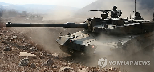 | △ 기동훈련하는 K2 전차 (양평=연합뉴스) 신영근 기자 = 11일 오전 경기도 양평 육군 20기계화보병사단 종합전투훈련장에서 K2 전차 기동훈련이 실시되고 있다. 2015.2.11 drops@yna.co.kr http://blog.yonhapnews.co.kr/geenang |