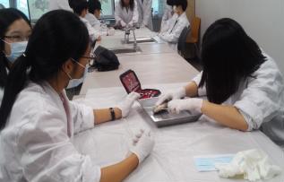 | △ 창의체험과학교육프로그램 모습. 전시물집중탐구과정에 참여한 청소년들이 붕어를 해부하고 있다. 국립과천과학관제공 |