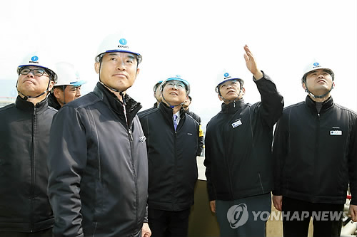 | △ 문재도 산업부 2차관, 가스공사 평택생산기지 현장 방문 (서울=연합뉴스) 문재도 산업통상자원부 2차관(가운데)이 11일 한국가스공사 평택 생산기지를 방문, 가스 수급상황을 확인하고 안전관리 실태를 점검하고 있다. (산업통상자원부 제공) |