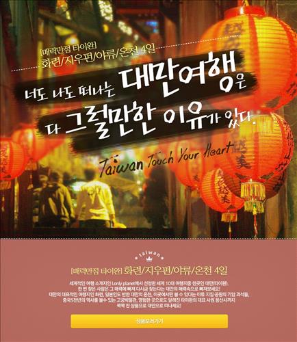 (서울=연합뉴스) 전준상 기자 = 직판여행사인 노랑풍선은 '너도 나도 떠나는 대만여행은 다 그럴만한 이유가 있다' 기획전을 진행한다고 11일 밝혔다.