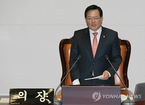 (서울=연합뉴스) 김경희 김연정 기자 = 정의화 국회의장은 12일 여야가 대치하고 있는 이완구 국무총리 후보자에 대한 인준 표결과 관련, 여야 합의로 경과보고서를 채택할 것을 주문했다.