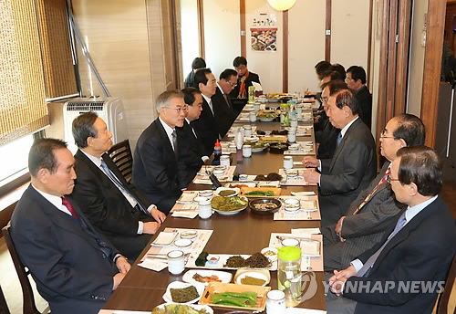 문 대표는 이날 여의도의 한 식당에서 상임고문단 10여명과 오찬을 함께하면서당의 운영방향에 대한 조언을 구했다.