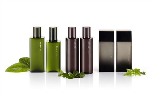30대를 위한 '스네일 솔루션 옴므' 라인은 주름 개선과 미백 효과를 지닌 기능성 화장품으로 달팽이 점액 여과물이 피부 탄력을 높여준다.