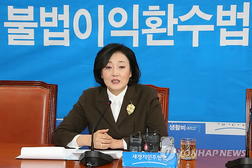 (서울=연합뉴스) 박경준 기자 = 새정치민주연합 박영선 의원은 13일 국회에서 기자회견을 하고, 불법 행위로 얻은 소득을 국가가 환수하도록 하는 내용을 골자로 한 '특정재산범죄수익 등의 환수 및 피해구제에 관한 법률안'(일명 '이학수법안')을 발의한다고 밝혔다.