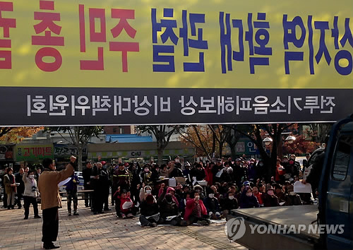 | △ 대구 동구 주민들이 2013년 11월 K-2 전투기 소음피해 보상을 요구하는 모습. <<연합뉴스DB>> |